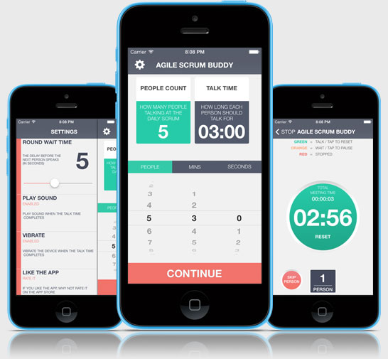 Want to make sure your Daily Scrums stay on track? Members of staff talking for too long? Agile Scrum Buddy allows you to time the Daily Scrum and will fire alerts when its time for the next person to talk. Simply set the amount of time you would like each employee to talk for and the number of employees at the daily scrum, then start the timer.