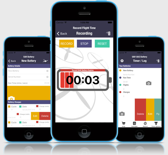 UAS (UAV) Battery Flight Timer is your personal flight assistant, keeping you up to date while you concentrate on flying your expensive hardware.