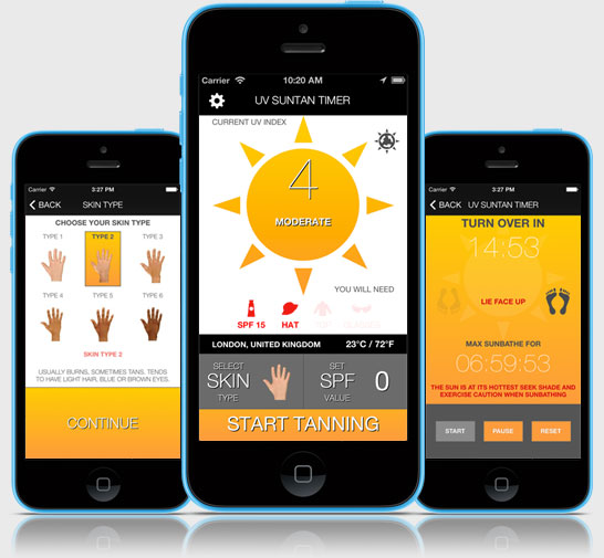 Getting a great tan gives you a healthy glow and makes you look amazing, but getting sun burnt can easily ruin that! It's important to enjoy the sun but also protect your skin from sunburn and increased risk of skin cancer.The UV SunTan Timer will help reduce your chances of burning and ensure you get an even tan, no matter what skin type you have. By analysing the UV Index at your current location, your skin type and the SPF of your sunscreen, you will have a tailor made sunbathing time that will help you avoid burning even during the hottest days.